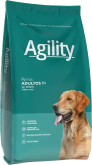 Agility Adultos 7+ es un alimento especialmente formulado para promover una vida ágil, longeva y saludable en la madurez. Sus ingredientes de máxima calidad resaltan el sabor, estimulando los sentidos y la apetencia del perro. Un blend especial de ácidos grasos esenciales rejuvenecen la piel y potencian el sistema cognitivo, agudizando los sentidos del perro maduro. El Complejo Inmuno Age, retrasa el envejecimiento celular, fortalece el sistema inmunológico y protege las articulaciones. Su exclusiva fórmula está basada en la tecnología Active Health: una combinación de nutrientes minuciosamente seleccionados para que tu perro mantenga siempre su máximo potencial.