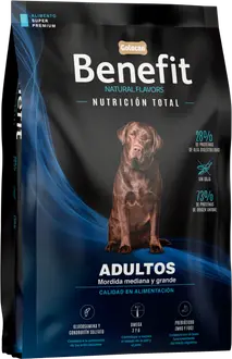 Benefit Adulto Mordida Mediana/Grande es un alimento seco súper premium especialmente formulado para perros adultos de mordida mediana y grande. Con ingredientes de alta calidad, este alimento está diseñado para promover la salud articular, digestiva y la condición física de tu perro. Gracias a su fórmula equilibrada, proporciona todos los nutrientes esenciales que tu perro necesita para mantenerse activo, saludable y fuerte.