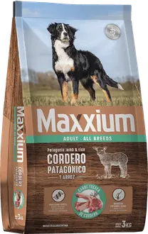 Maxxium Cordero Patagónico y Arroz está especialmente desarrollado para perros con sensibilidad cutánea.